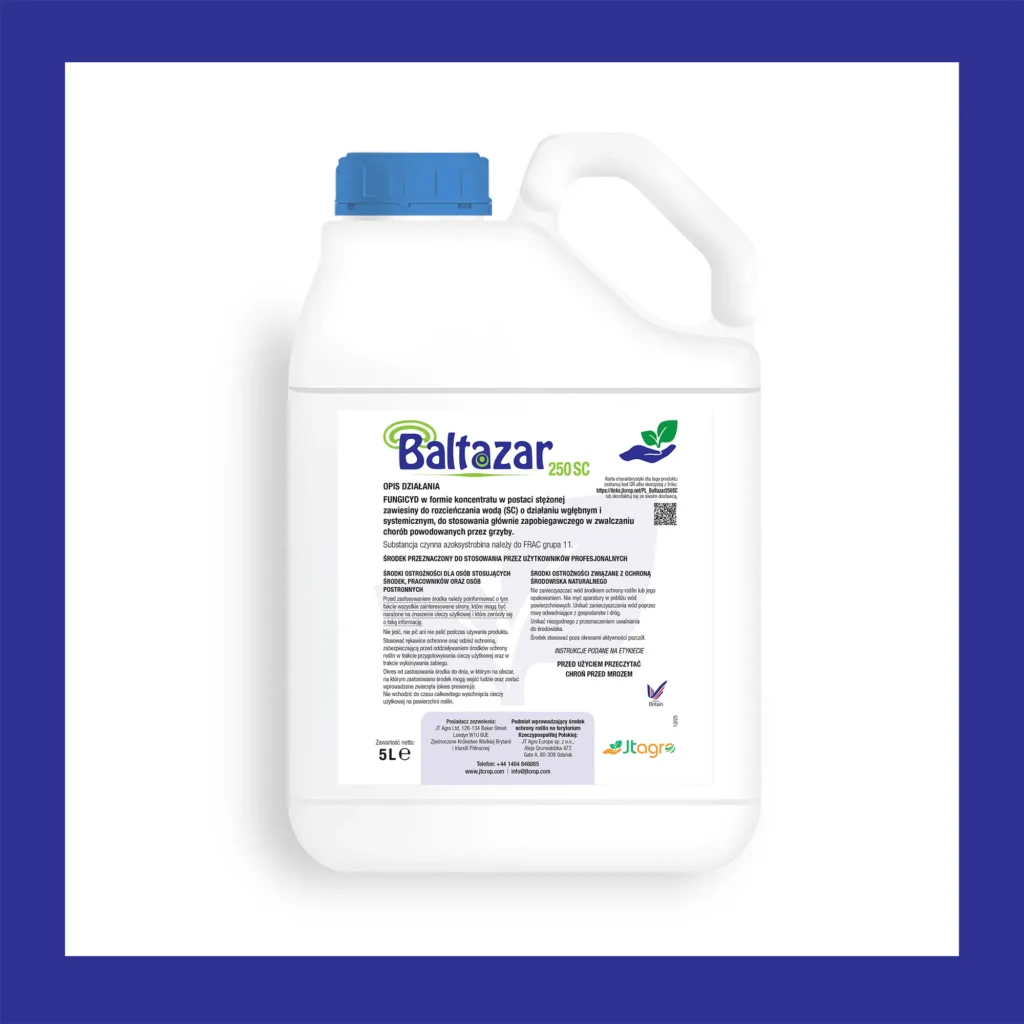 Zawartość substancji czynnej: azoksystrobina (związek z grupy strobiluryn) – 250 g/l (22,81%)